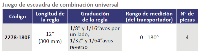 JUEGO ESCUADRA DE COMBINACION 1/8″» Y 1/16″» 1/32″» Y 1/64″»