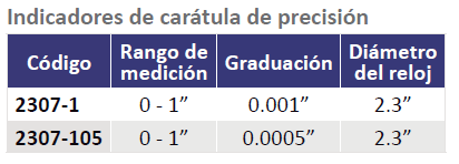 INDICADOR DE CARATULA DE 0-1″» GRADUACION 0.0005″» DIAMETRO DEL RELOJ 2.3″»