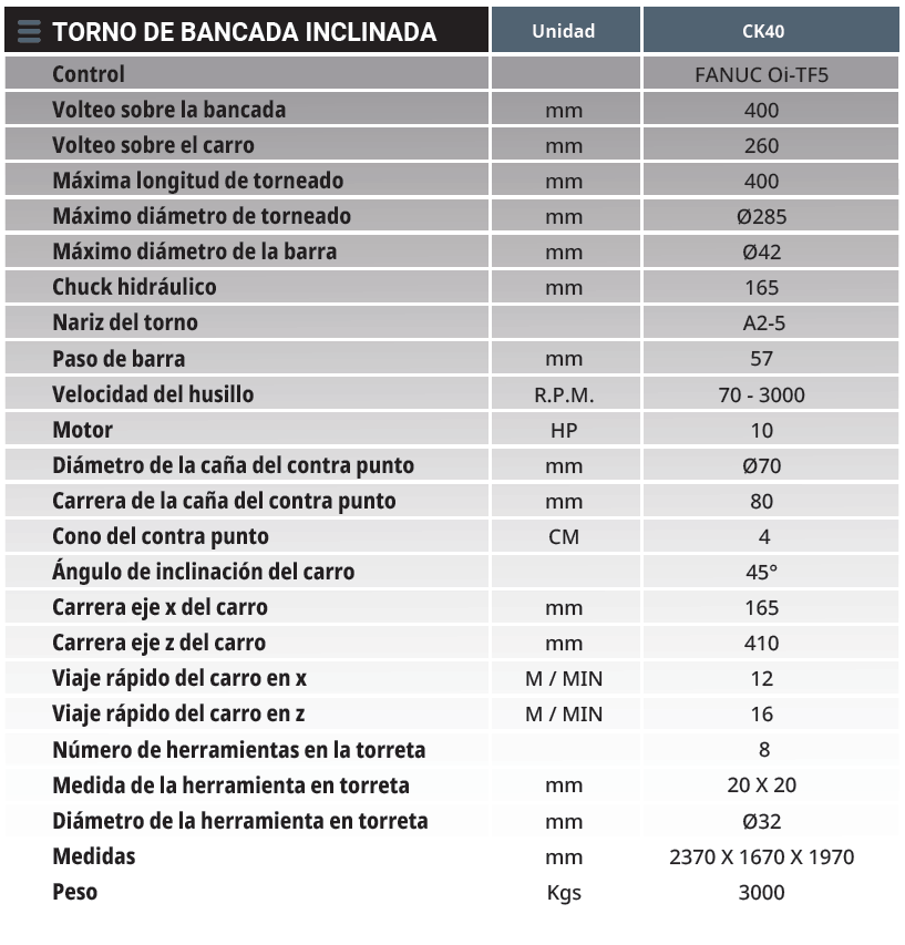 TORNO BANCADA INCLINADA 400/1000MM CONTROL FANUC