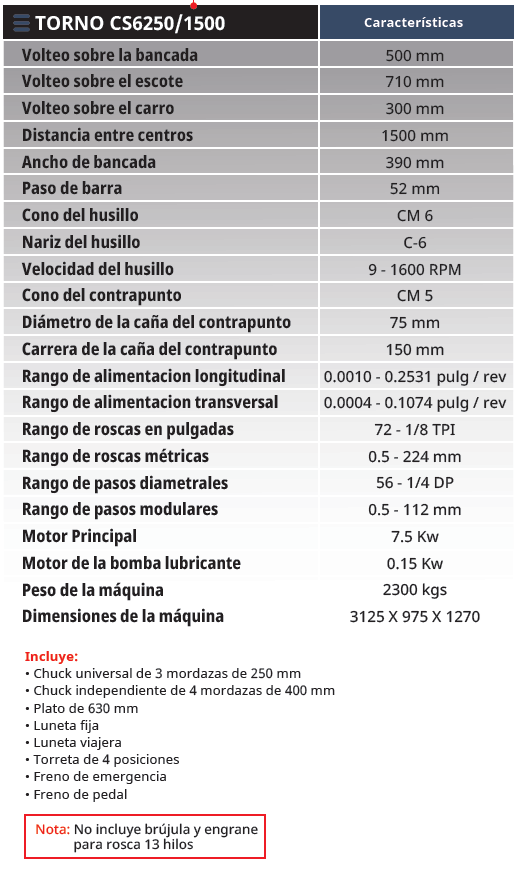TORNO UNIVERSAL DE 20” DE VOLTEO Y 1.5 METROS DE DISTANCIA ENTRE PUNTOS