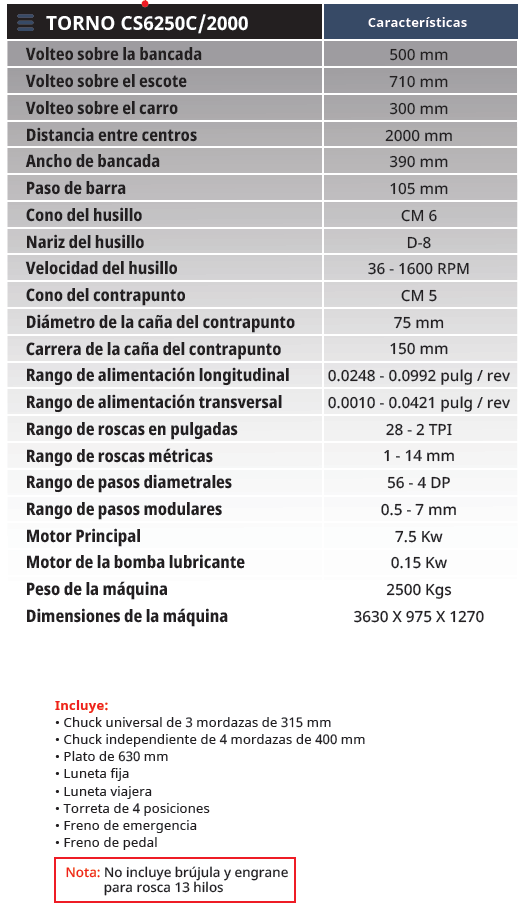 TORNO UNIVERSAL DE 20” DE VOLTEO, PASO DE BARRA 105MM Y 2 METROS DE DISTANCIA ENTRE PUNTOS