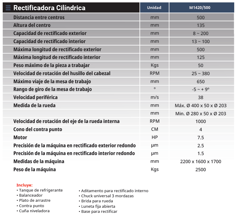 RECTIFICADORA CILINDRICA DE 100 X 500MM