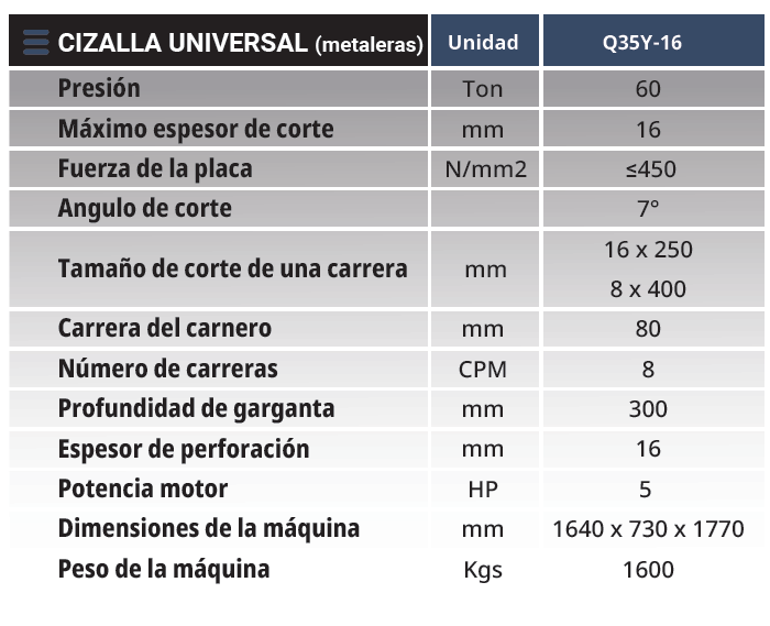 CIZALLA UNIVERSAL (METALERA) DE 16 TONS