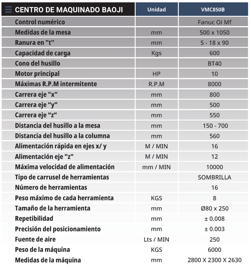 CENTRO DE MAQUINADO 500X1050MM CONTROL FANUC