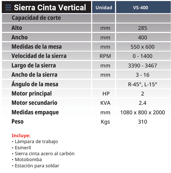 SIERRA CINTA VERTICAL ANCHO DE CORTE 400MM