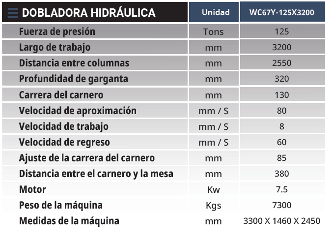 PRENSA DOBLADORA HIDRÁULICA CAPACIDAD DE 125TONS X 3200MM